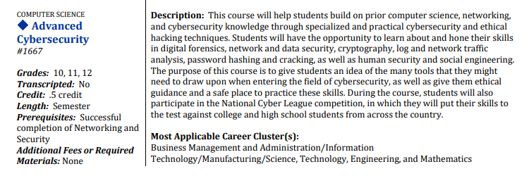 0.5 Advanced Cybersecurity (Computer Science – semester course)